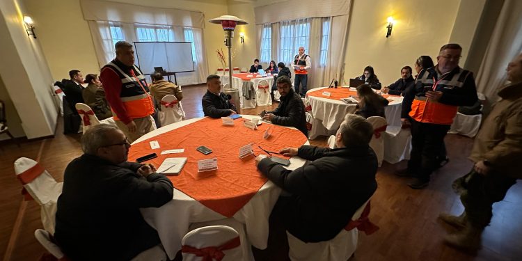 TALCA.- El delegado presidencial regional, Humberto Aqueveque Díaz, junto al director regional de Senapred, Carlos Bernales; la seremi de Gobierno, Nataly Rojas junto a las policías y otras autoridades regionales, lideraron un ejercicio de mesa que simuló un terremoto de magnitud 8.8 con epicentro en la Región del Maule seguido de un posterior tsunami, que tuvo como objetivo medir los tiempos de respuesta de los servicios e integrantes del Cogrid Regional.